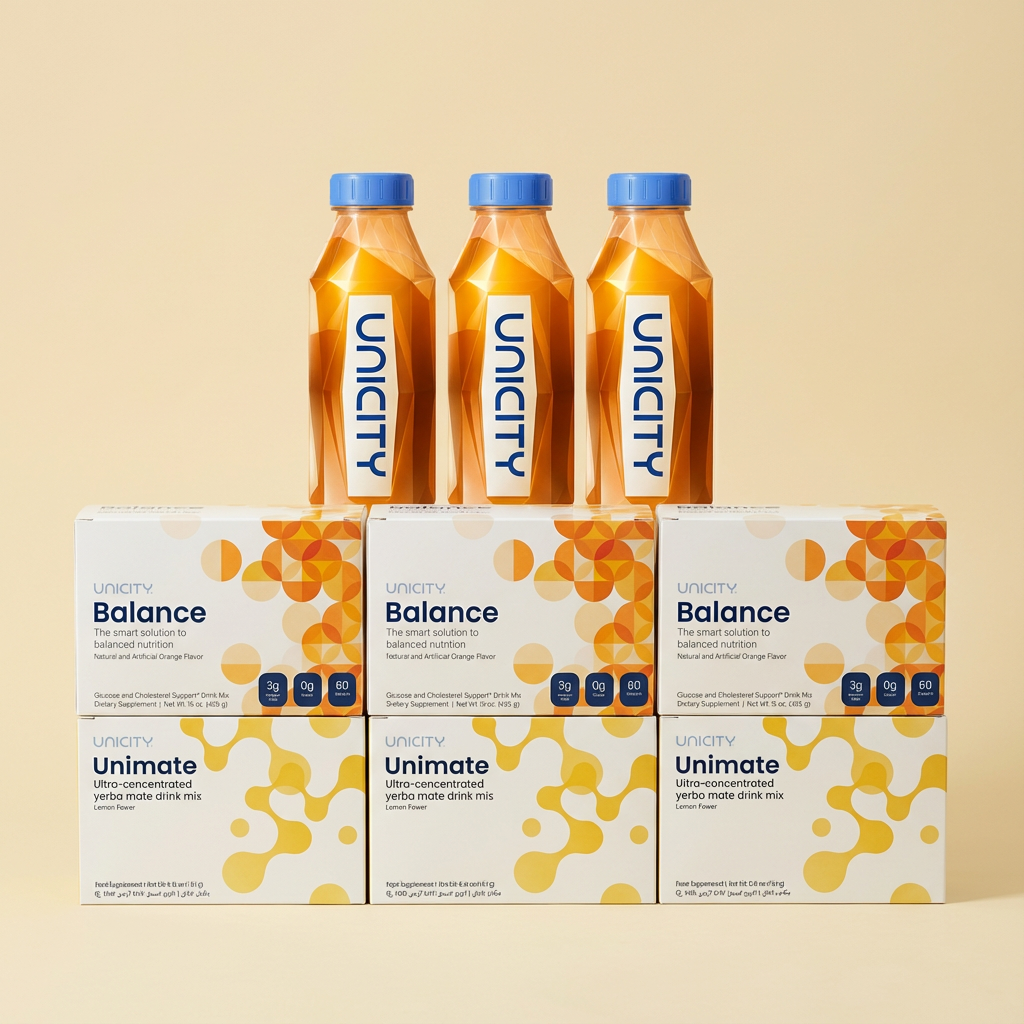 Unimate Lemon هو مشروب قائم على مستخلص أوراق المتّة (Yerba Mate) بنكهة الليمون المنعشة، يمكن تناوله باردًا أو ساخنًا للحصول على نشاط وتركيز يومي بطريقة طبيعية. Balance هو مشروب ألياف ذائبة يُشرب قبل الوجبات، يساعد على الشعور بالامتلاء وراحة الجهاز الهضمي كجزء من نظام غذائي متوازن.